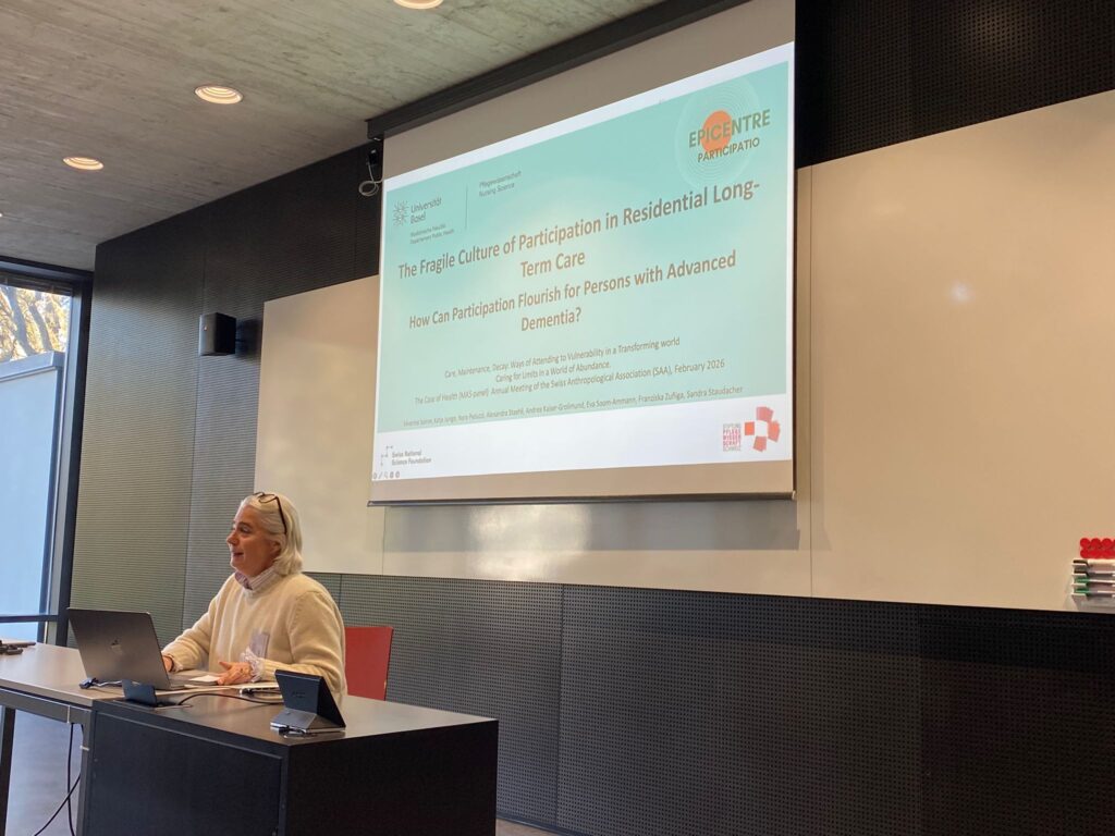 At the beginning of February, Séverine Soiron presented insights into her dissertation project at the annual conference of the Swiss Anthropological Association (SAA) in Fribourg. The presentation took place as part of the panel “Caring for Limits in a World of Abundance: The Case of Health” organized by Medical Anthropology Switzerland (MAS) (Nolwenn Bühler and Anna Mann).